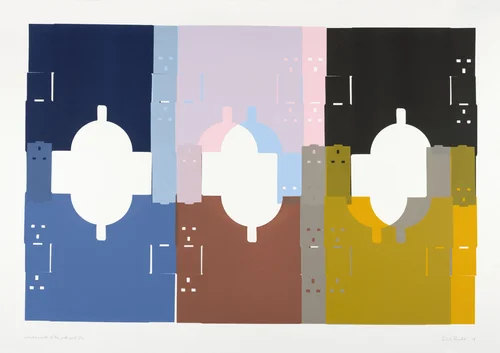 In my screen prints the image is constructed using the building blocks of colour, shape, rhythm and pattern. Screen printing is a good medium for this.
